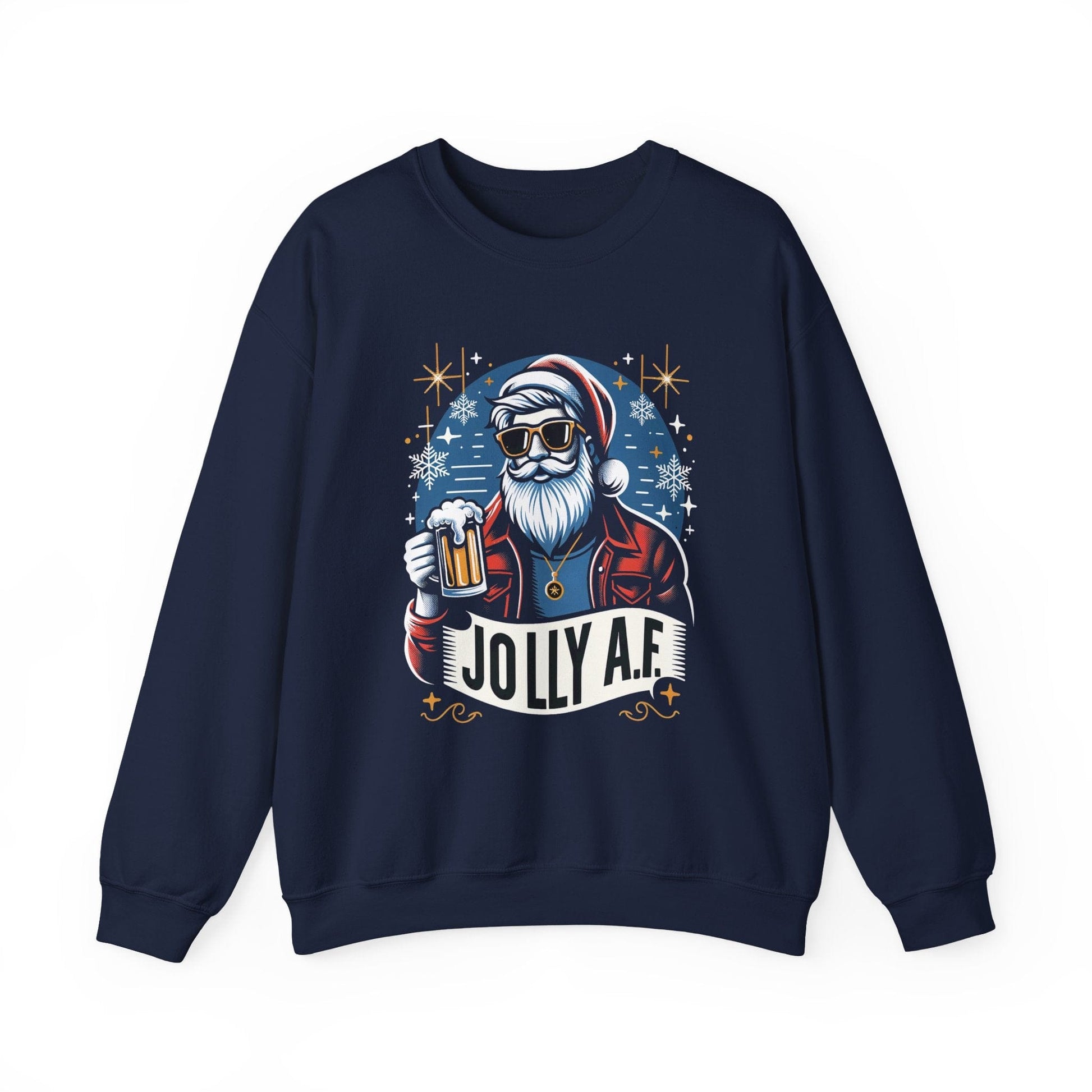 Jolly AF Santa Beer Sweatshirt – Funny Christmas Crewneck for Beer Lovers (Unisex Holiday Sweater)